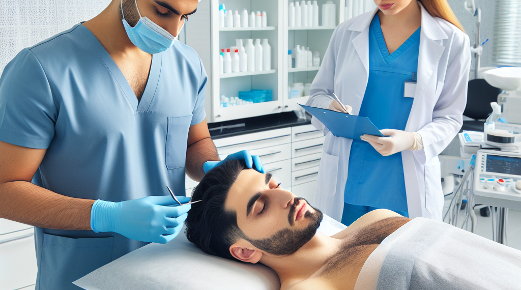 Klinik ortamında saç ekimi sürecini gösteren bir görüntü